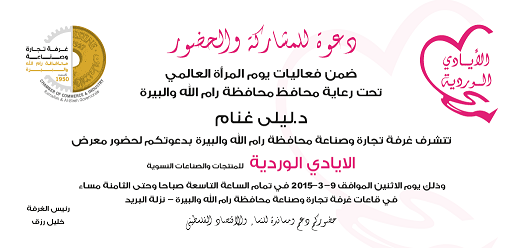تدعوكم غرفة تجارة وصناعة محافظة رام الله والبيرة لحضور معرض الايادي الوردية