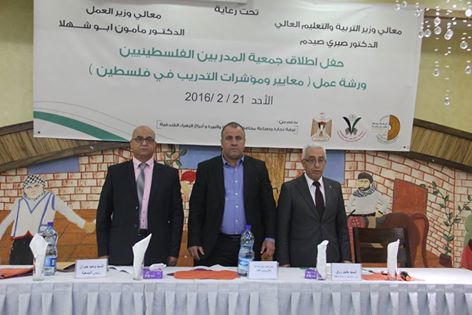 تحت رعاية وزير التربية والتعليم العالي ووزير العمل أقامت جمعية المدربين الفلسطينيين حفلا لإطلاقها امس الاحد في ابراج الزهراء بمدينة البيرة