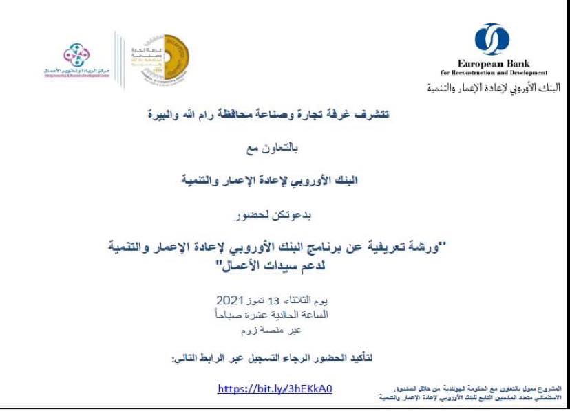 دعوة لحضور ورشة تعريفية عن برنامج البنك الاوروبي لاعادة الاعمار والتنمية لدعم سيدات الاعمال
